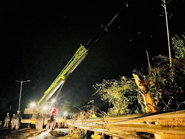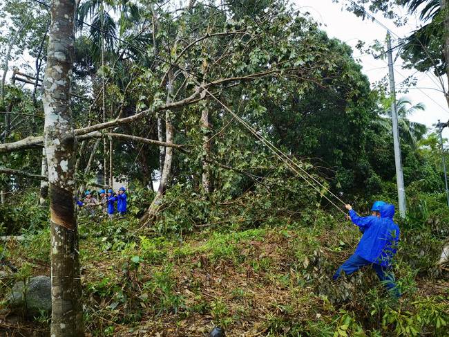 到達(dá)海南后,揭陽(yáng)明利綜合能源發(fā)展有限公司支援海南抗災(zāi)搶險(xiǎn)隊(duì)在澄邁縣緊鑼密鼓開(kāi)展搶修復(fù)電工作。澄邁地貌相對(duì)平整,但林區(qū)覆蓋率較高,橡膠林香蕉園廣泛分布,臺(tái)風(fēng)摩羯過(guò)境后,林區(qū)樹(shù)木倒塌壓垮電線,線路損壞嚴(yán)重。為打通線路搶修通道,加快復(fù)電進(jìn)度,公司搶險(xiǎn)隊(duì)伍一邊組織大型施工機(jī)械快速重新組立電桿,一邊組織人員及時(shí)消缺搶修,力爭(zhēng)以最快速度恢復(fù)線路正常供電。