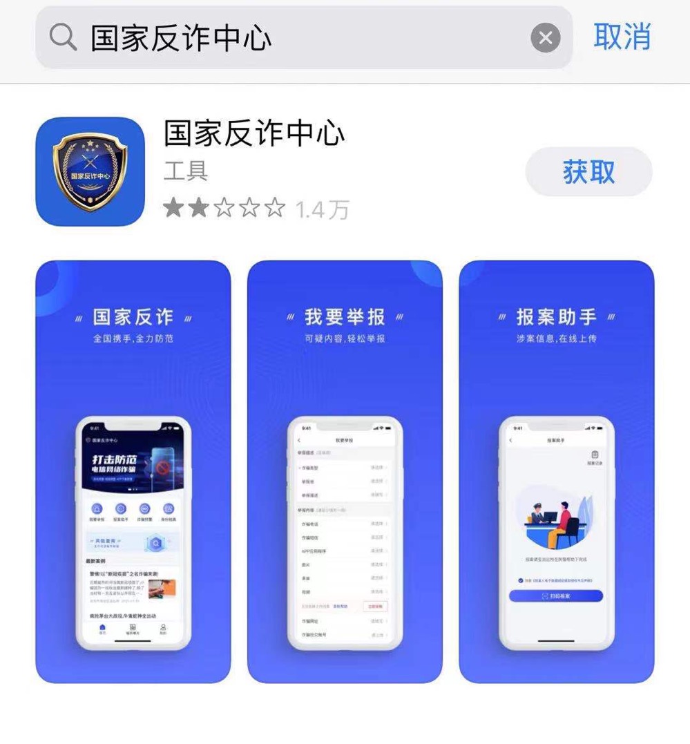 1、在各大官方應(yīng)用商店搜索“國家反詐中心”并下載