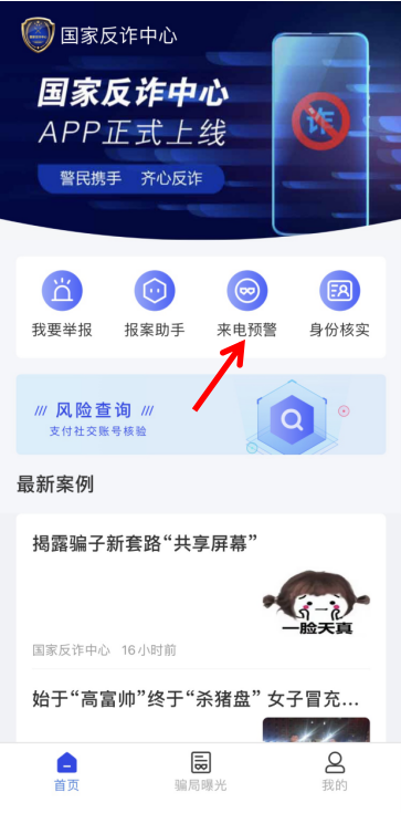3、完成身份認(rèn)證和人臉識(shí)別后,點(diǎn)擊頁面上的來電預(yù)警,即可開啟全方位的詐騙預(yù)警。